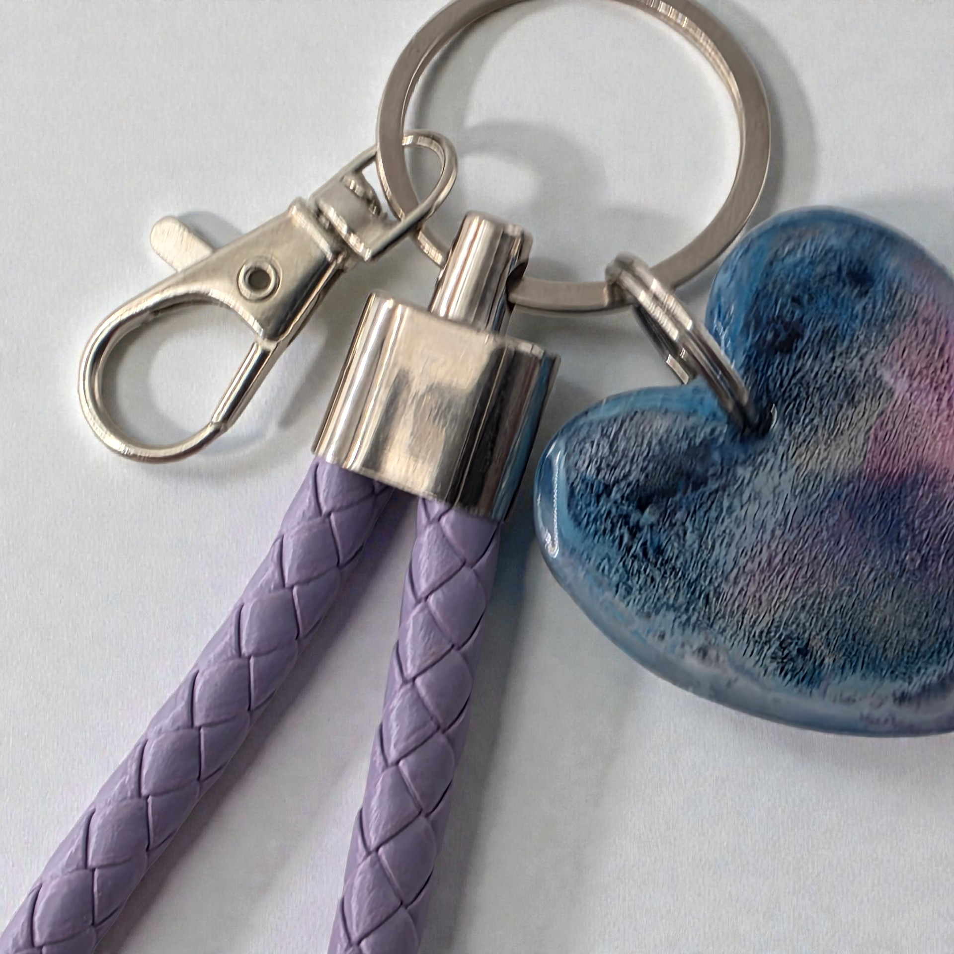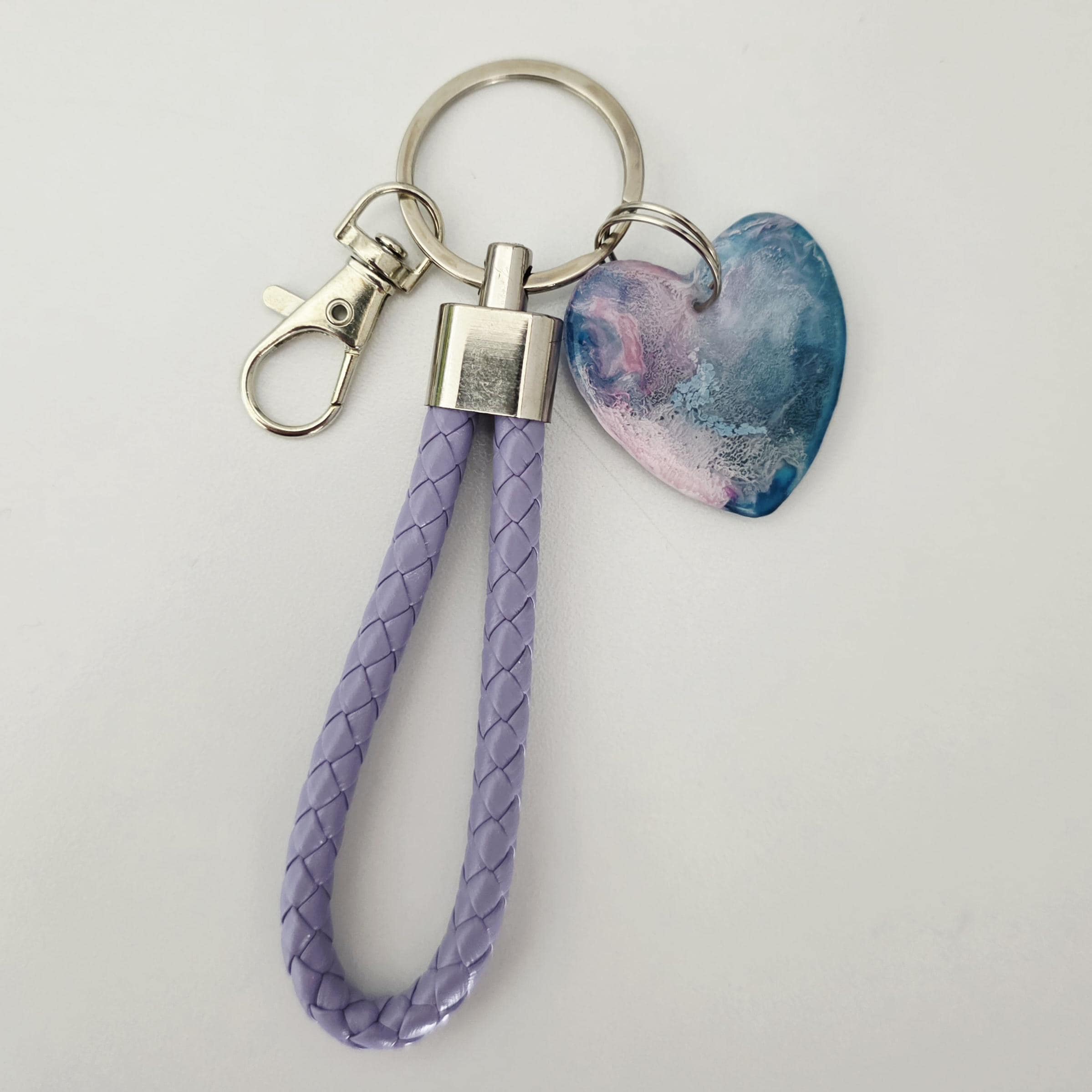 Our keychains are sure to bring colour and personality to your home. These keychains are perfectly imperfect, durable, and an envy for your friends. Made to order from raw materials (this is not a print), no two keychains are exactly alike. Each heart pendant comes with a coordinating wrist rope keychain which may vary in colour dependant on stock. For requests please send a note with your order.
