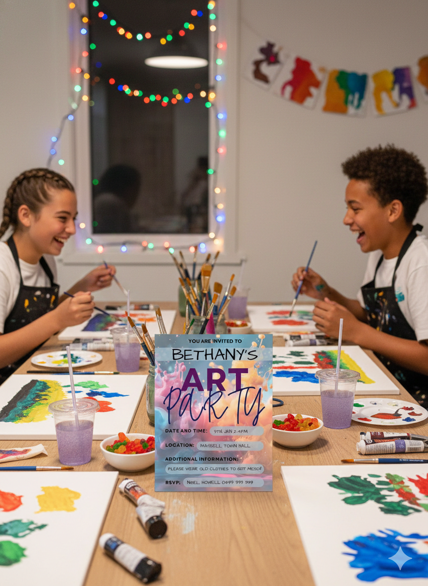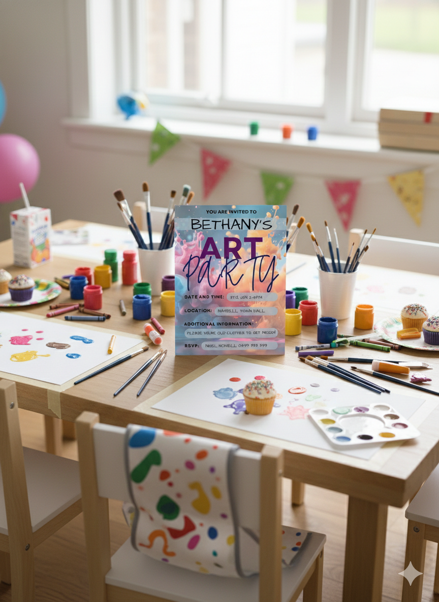 Unleash your creativity with our Art Party Digital Invitation! Whether you’re hosting a birthday, a painting workshop, or a gallery night, this bold design captures the messy, beautiful essence of making art.