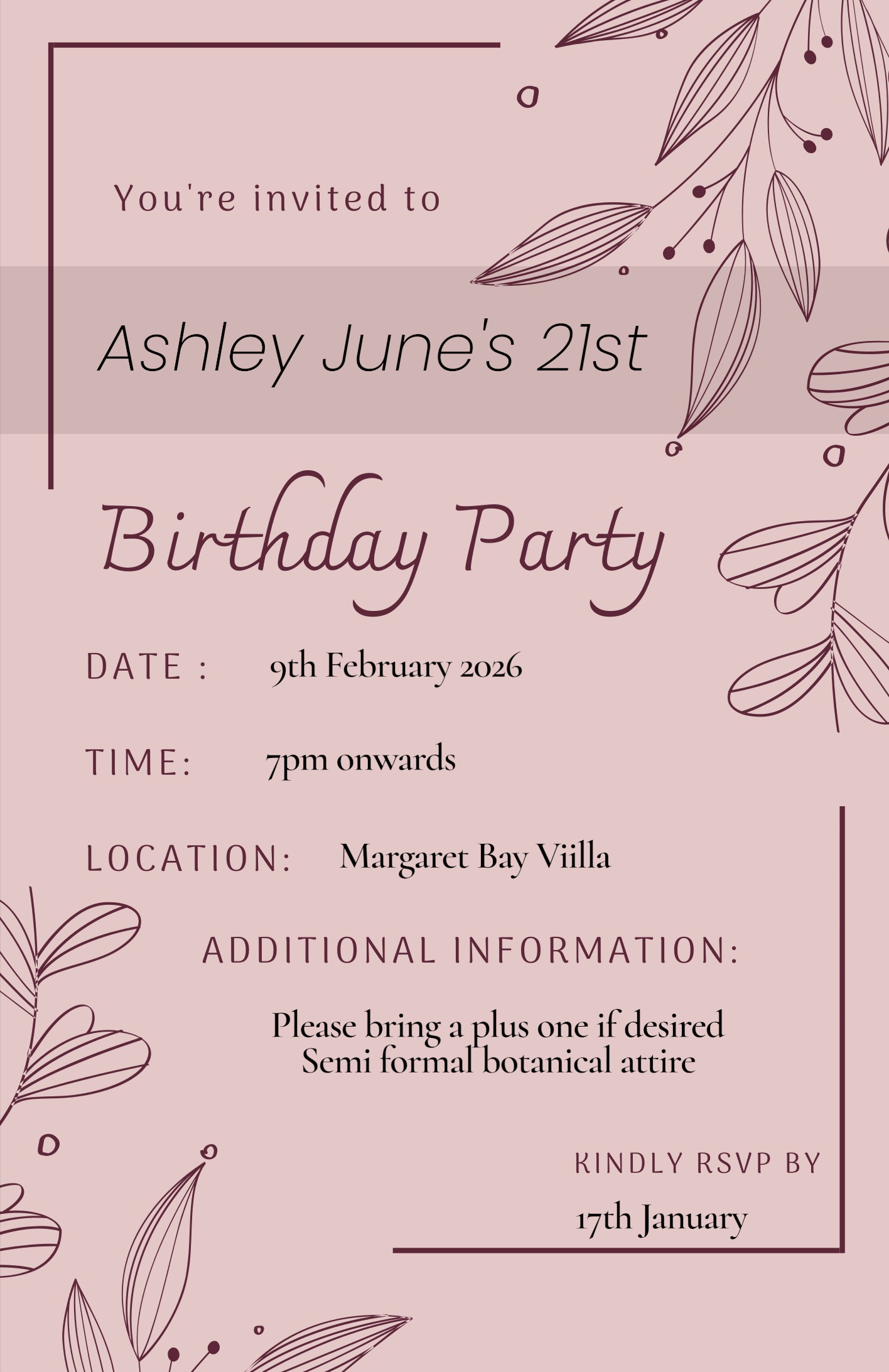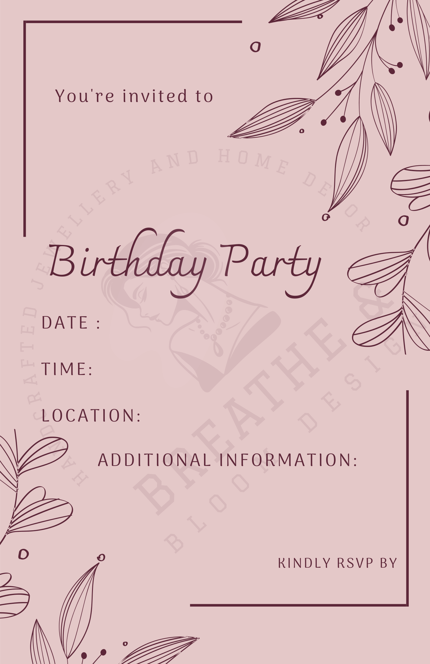 Minimalist Botanical Birthday Invitation – Dusty Rose Digital Template
