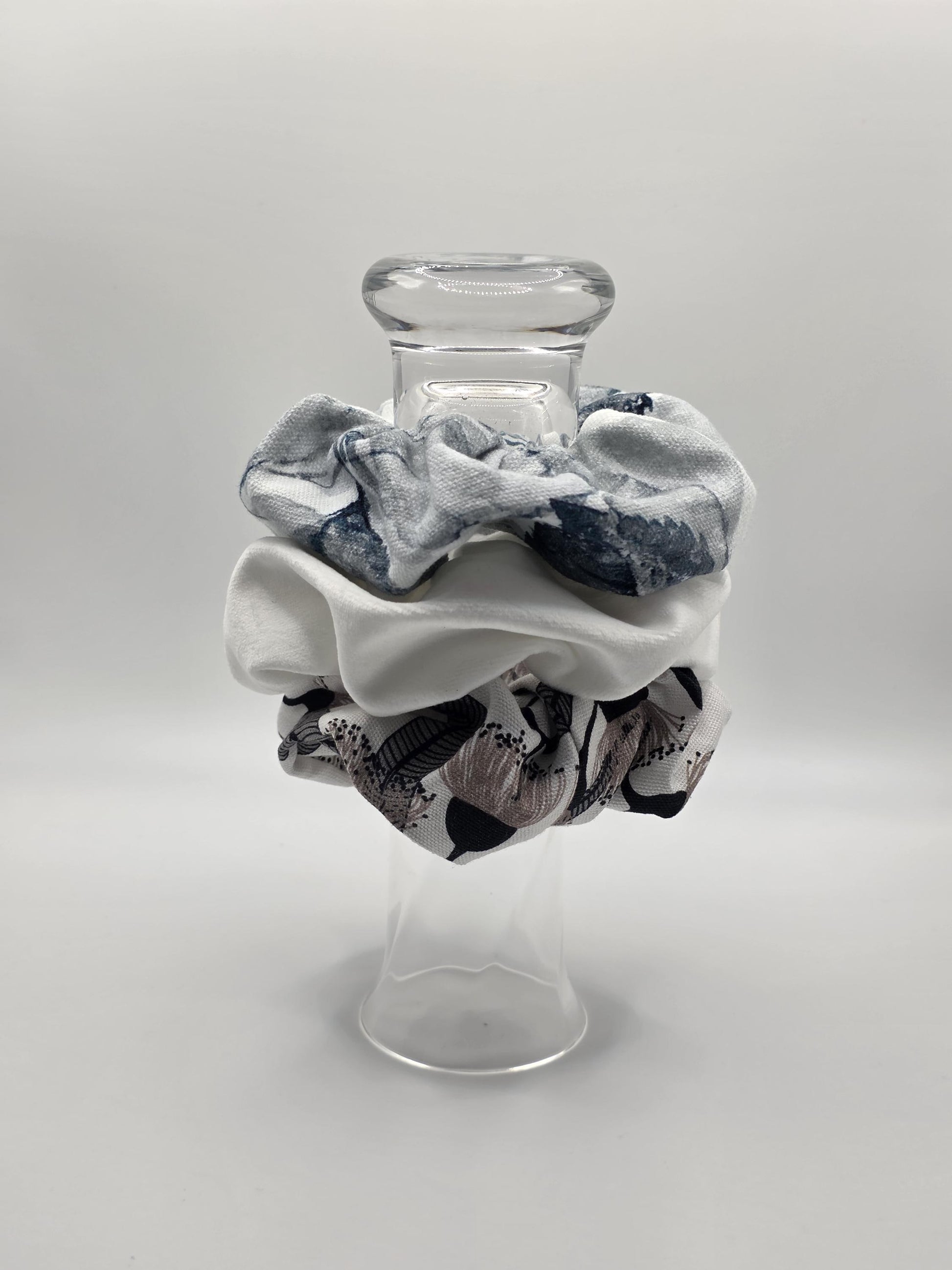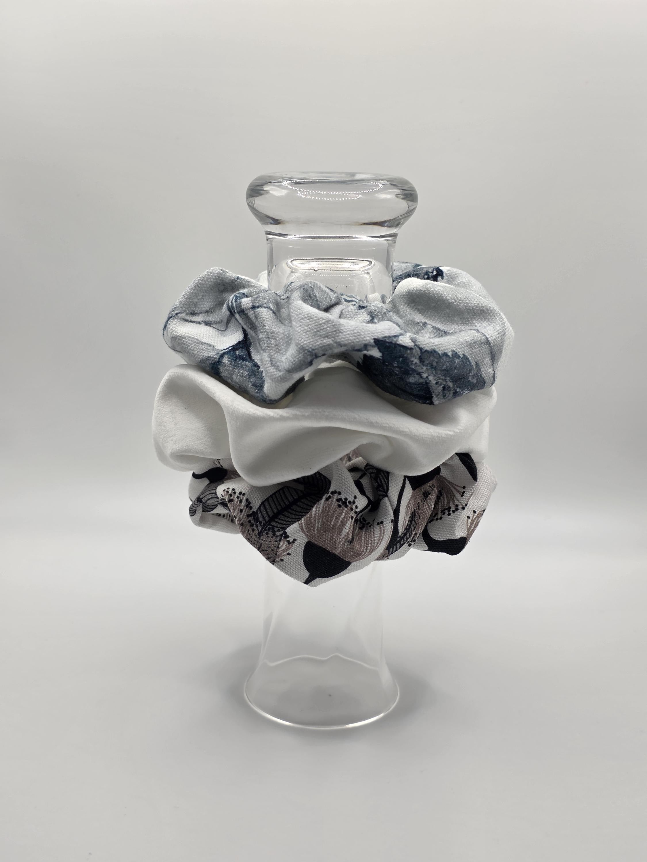 Handmade Large Luxe Scrunchies. Pack of three in a gorgeous light and bright theme we have named 'Calm'. Soft and gentle on your hair, these scrunchies are made to last the test of time. Thank you for supporting our small Tasmanian business.