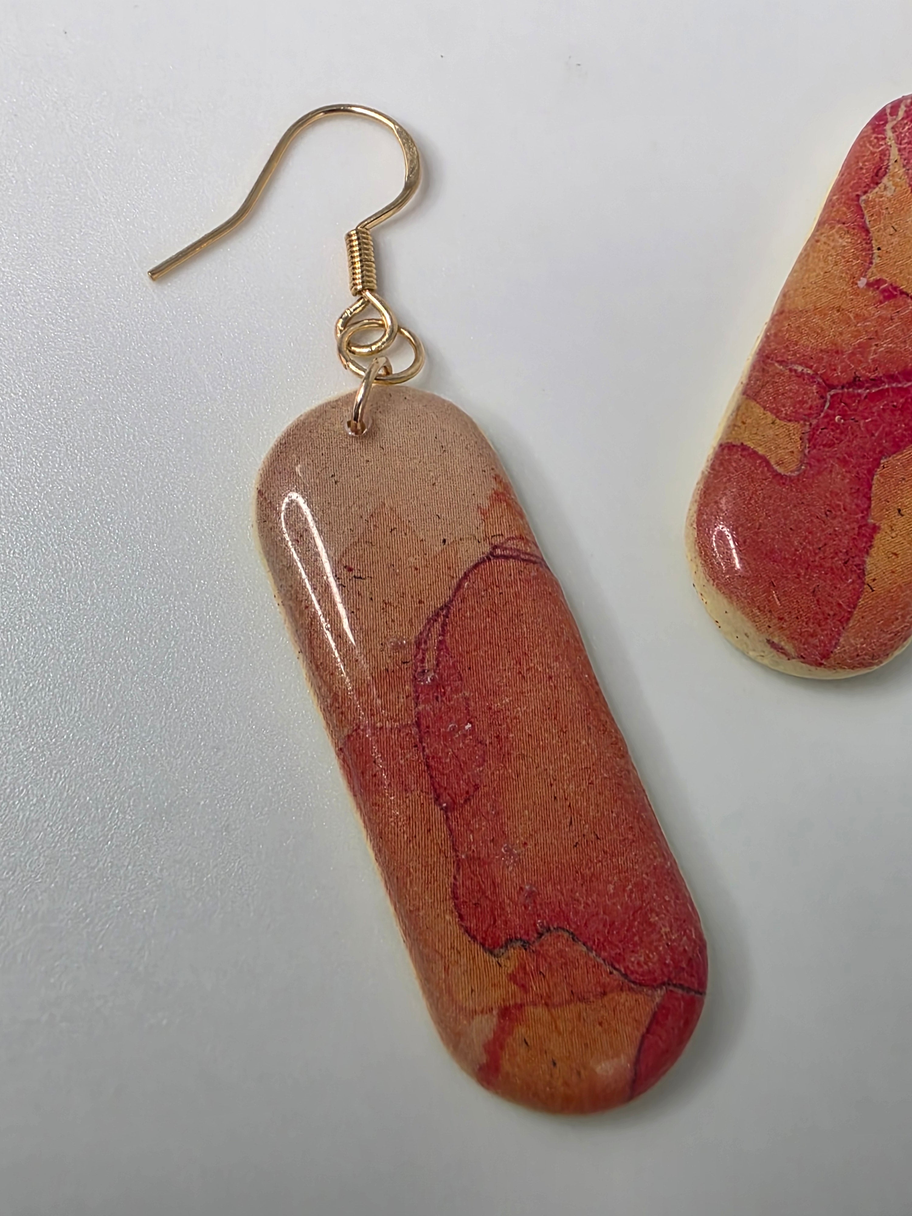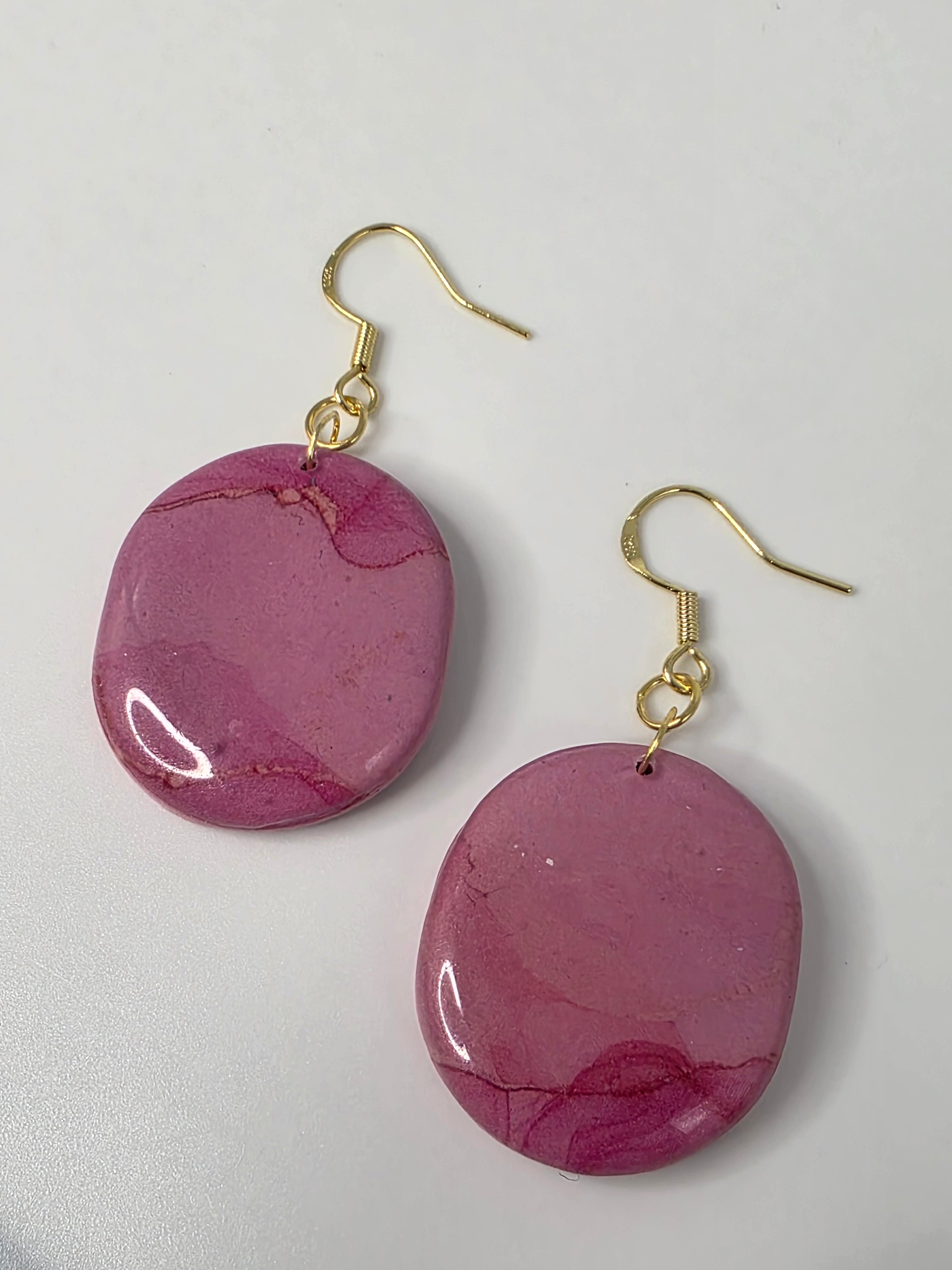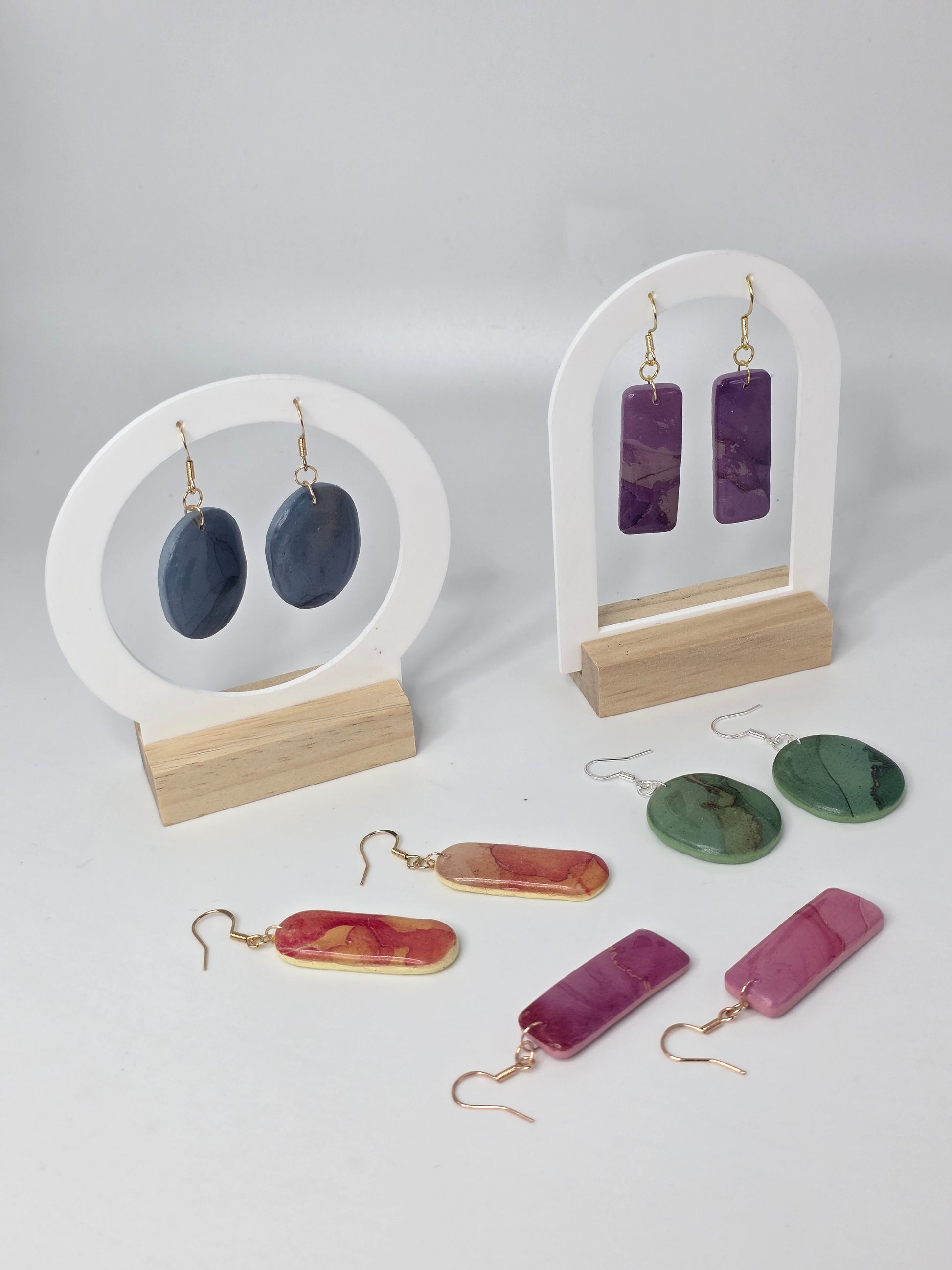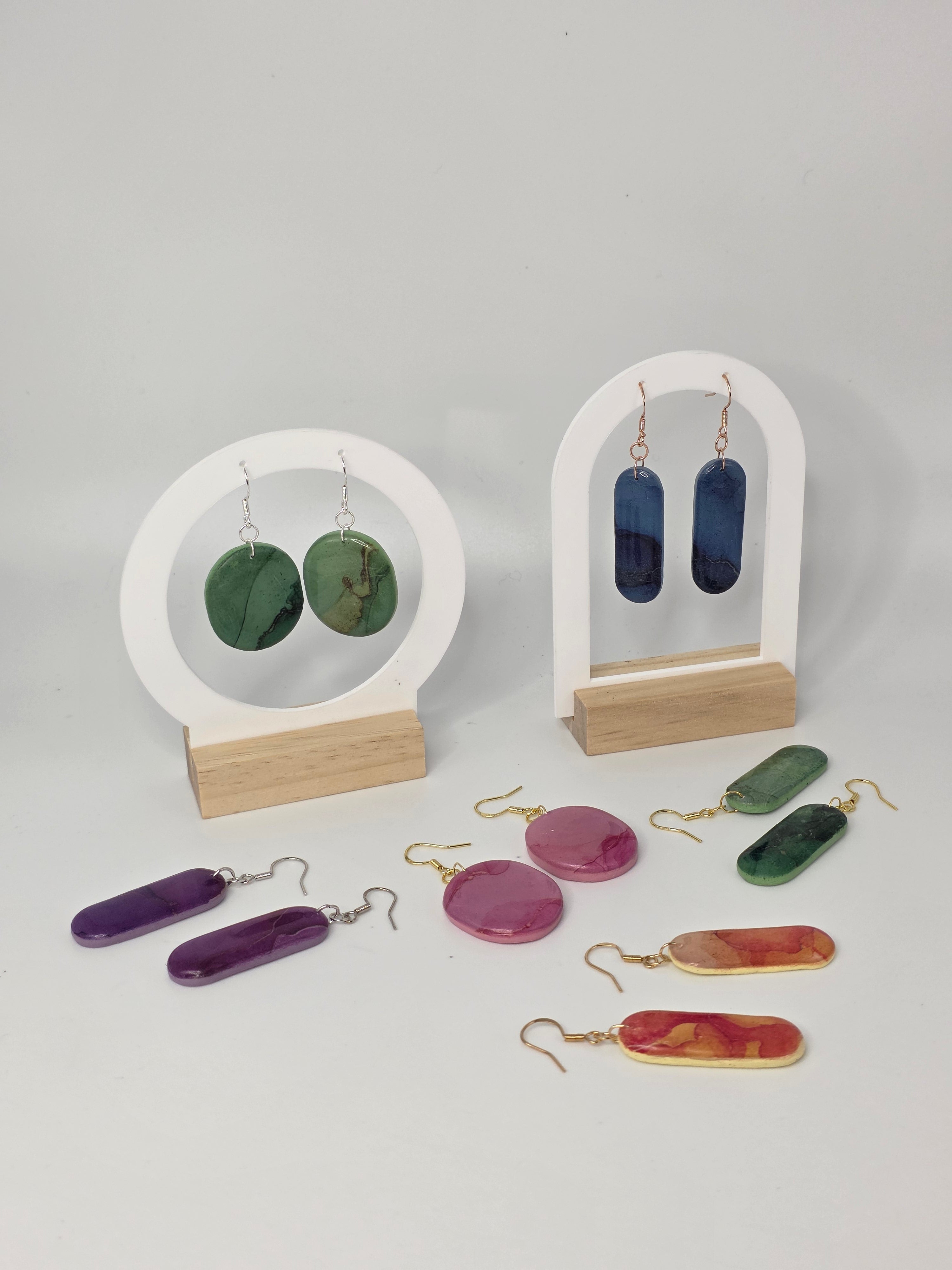 Each pair is a labor of love and precision. The journey begins with high-quality polymer clay, hand-mixed and layered using a specialized transfer technique to create one-of-a-kind marbled patterns. No two pieces are ever identical; like stones pulled from a riverbed, each earring carries its own unique "fingerprint" of color and movement.